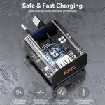 • : Reliable safety ABS+PC high-quality material to create a compact and durable exquisite appearance, A powerful Qualcomm Quick Charge 3.0 wall charger to keep your Quick Charge and other USB devices charged wherever you go.