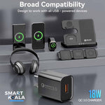 1x Black Smart Koala 18W USB A Fast Charging Wall Plug Adapter