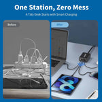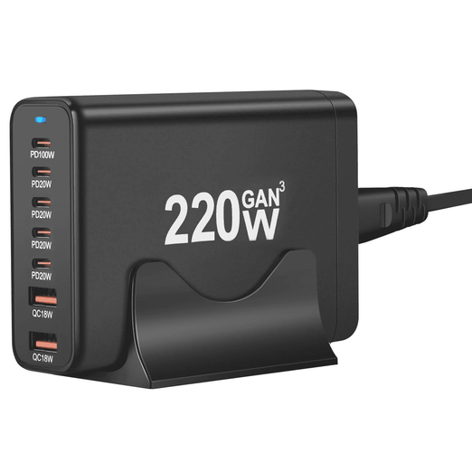 Power up all your devices simultaneously with this high-performance 220W GaN³ Fast Charging Station. Featuring 8 powerful outputs—including USB-C PD (Power Delivery) and USB-A QC3.0 (Quick Charge)—this compact desktop charger is ideal for home, office, or travel use. Built with the latest GaN³ (Gallium Nitride) technology, it ensures efficient energy transfer, reduced heat, and a sleek, space-saving design.
