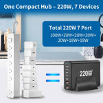 220W GaN³ Multi-Port USB Fast Charging Station – 7-Port Desktop Charger for Laptops, Tablets & Phones