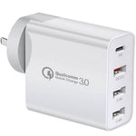 Qualcomm QC3.0 4 Ports 48W PD Fast Charging Charger Multi PD30W +QC18W Wall Plug Adapter (White)